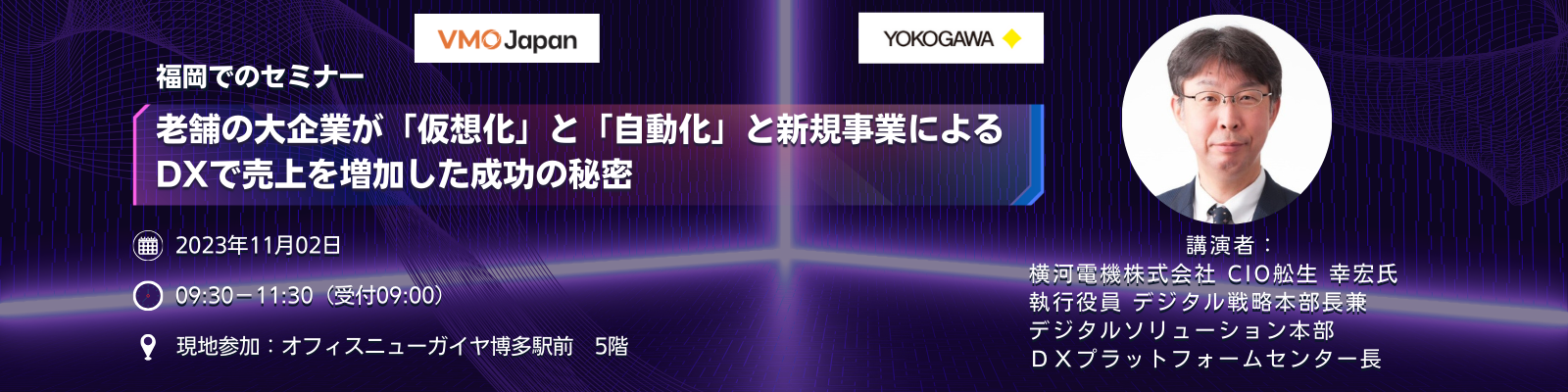 とともに、弊社クライアントである横河電機株式会社CIO舩生 幸宏氏より、2つのDXを推進する横河電機の哲学を説明し、老舗の大企業が実際どのように『デジタルエンタープライズ化』を行い、結果としてDXで売上の増加を達成してきたかをご紹介いたします。