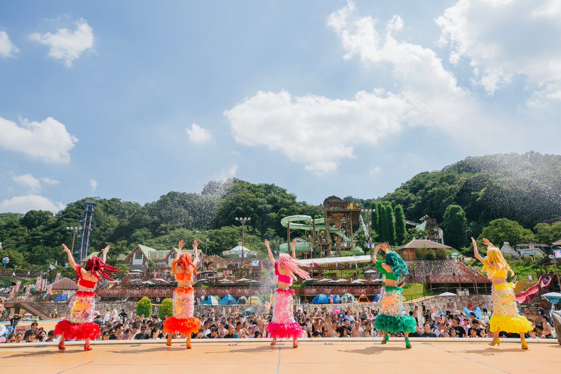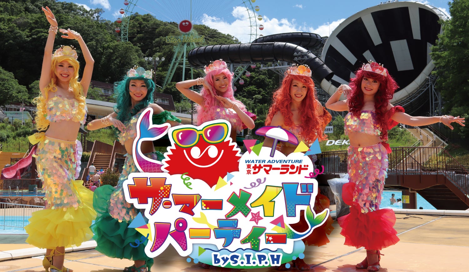 サ・マーメイドパーティーとは、“サマーランド”+“マーメイドパーティー”という名前のとおり、カラフルな衣装のマーメイドたちが、屋内プールの入口付近よりスタートし、終着点である屋外プールサイドステージまでお客様を引き連れながらサマーランド園内をパレードするというもの。ステージ上では、ダンスやウォーターキャノンによる水かけ祭りを行います。7月23日(土)~31日(日)の9日間限定で開催いたします。