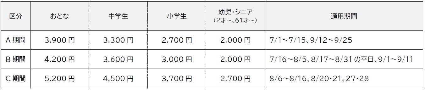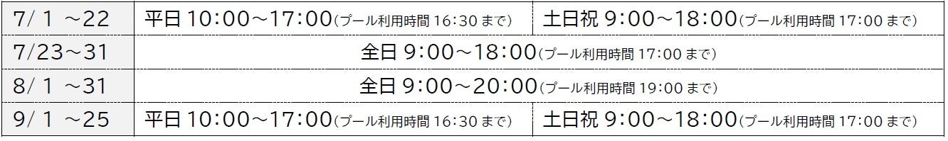 - 東京サマーランド営業概要(7月1日~9月25日)