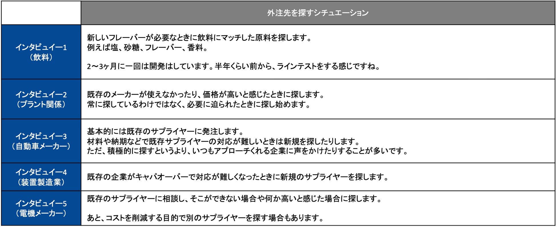 「サプライヤー企業を新規探索する際の背景、探索方法、ホームページのどこを見るか、選定基準」などについてインタビューした調査結果を公開