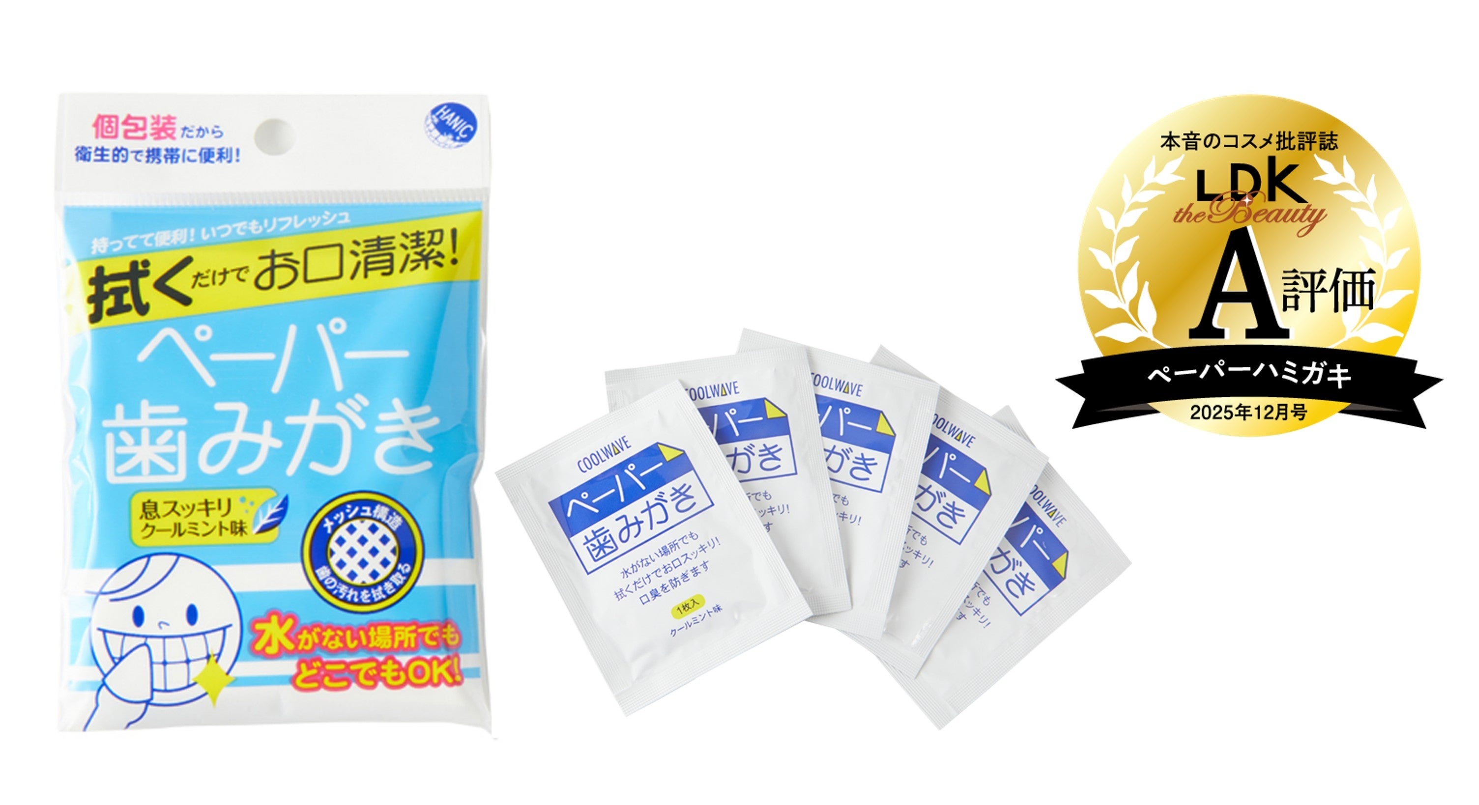LDK the Beauty12月号(2025年10月22日発売)での、話題のオーラルケア商品を比較・検証する企画内で、ペーパーハミガキ部門において【A評価】を獲得しました。