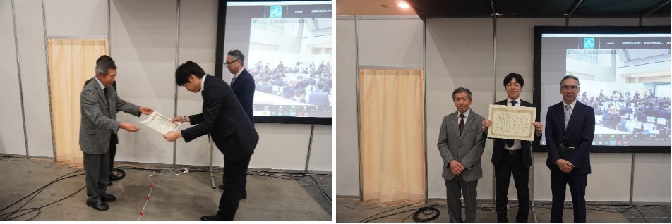 (写真=減災サステナブル技術協会の浅沼博代表理事から表彰状が贈られました)