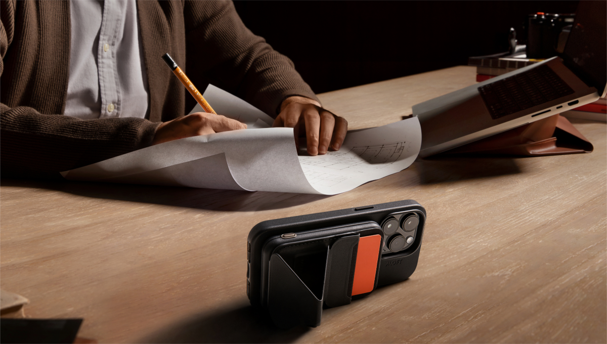 スタイリッシュなお父さんには、洗練されたヴィーガンレザー製スリングケースと、自由に角度調整可能なバッテリーパック&スマホスタンドのセットを。