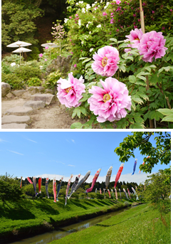 地元では有名なこいのぼりスポット。新緑がまぶしく心地よい季節