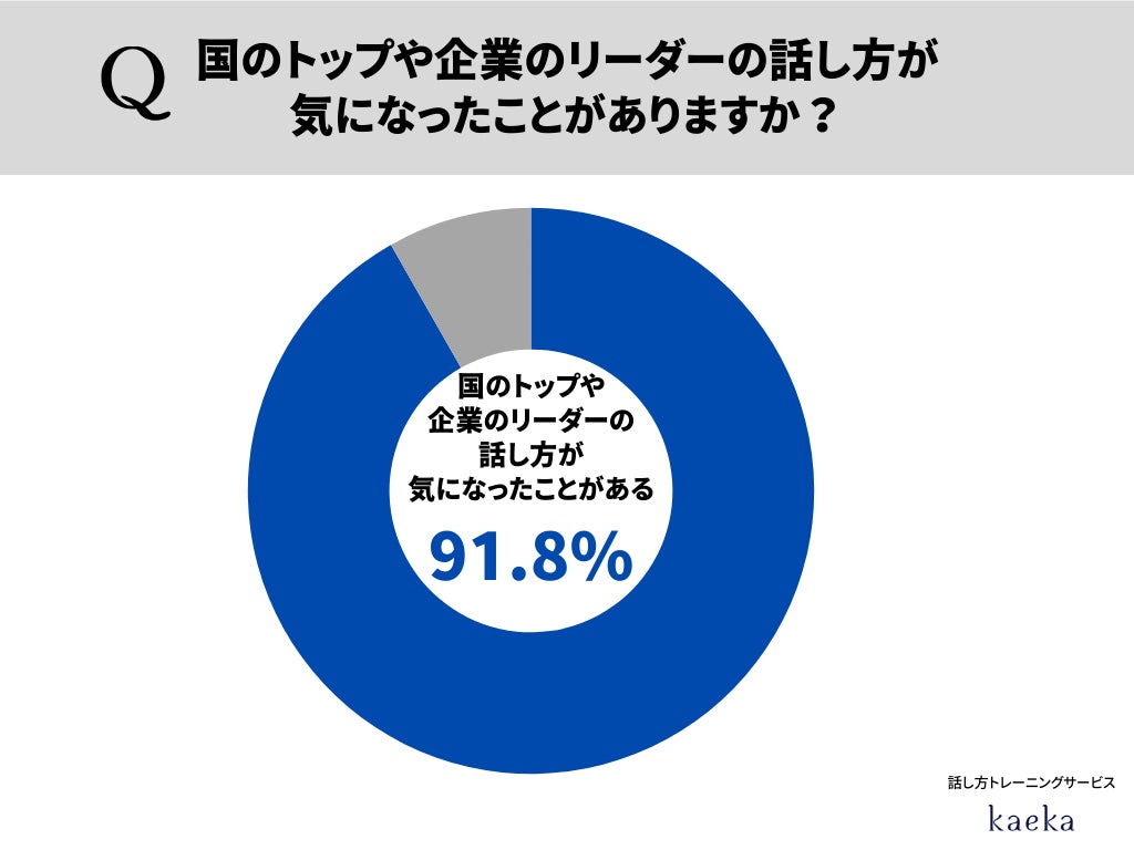 調査によると、「国のトップや企業のリーダー」の話し方が気になったことがある人は全体で91.8%に達しました。さらに、政治離れが懸念されている20代の若年層においても、89.8%が「リーダーの話し方が気になったことがある」と回答しています。
