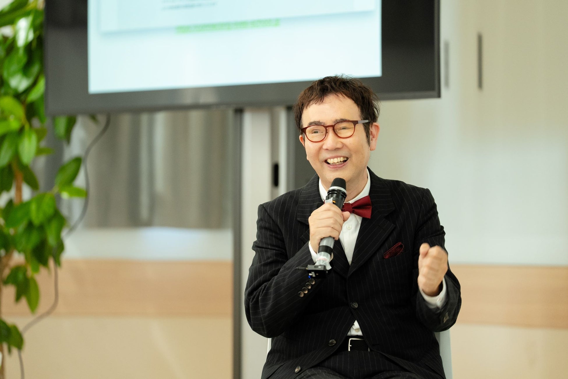 当日、フクオカハカセの講演では、アゲハチョウのサナギを解体し、いのちの不思議を感じたほろ苦い体験や、顕微鏡について知るために図書館に通い詰めたエピソードなどをはじめ、少年時代から持っていた「生命への探究心」について話しました。