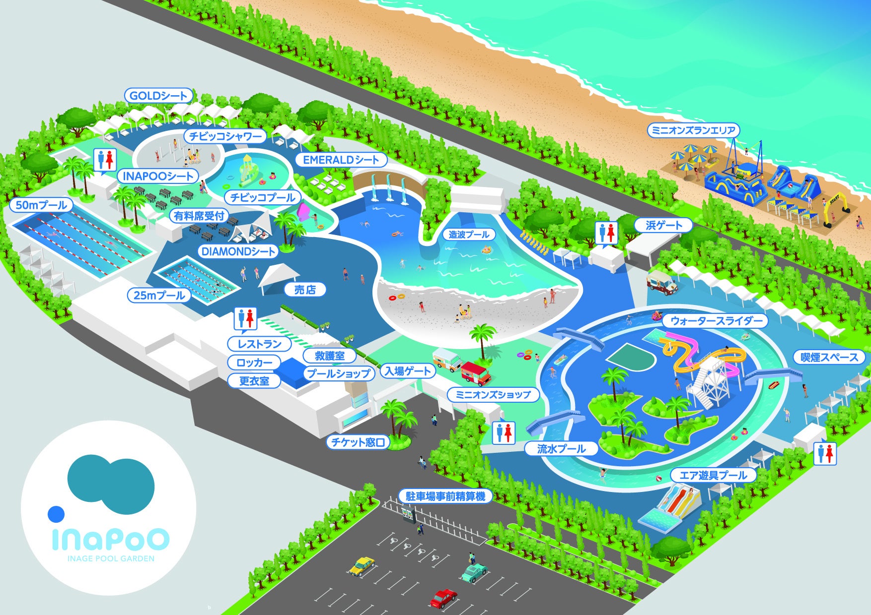*「SUNSET BEACH PARK INAGE」とは、稲⽑海浜公園内にて、株式会社ワールドパークがリニューアルを推進する区域やその施設を総称する愛称です。