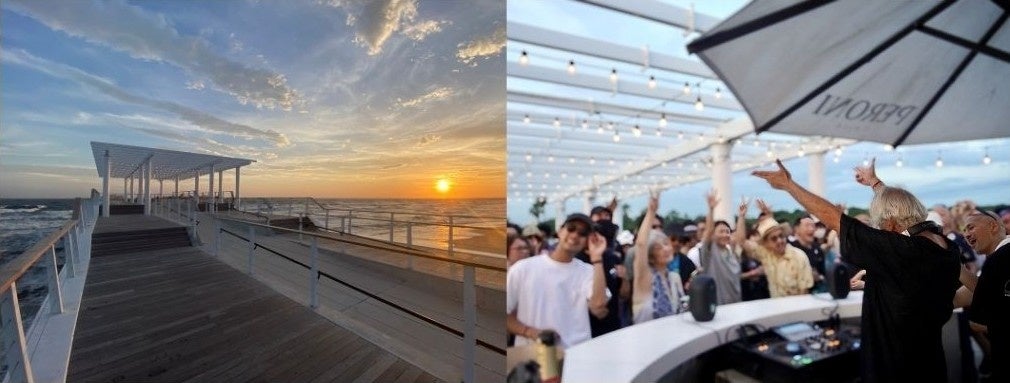 ホワイトサンドのいなげの浜には、SNSやTVで話題のスポットとなっている海へ延びるウッドデッキ「The SUNSET Pier & Café」があり、オリジナルドリンクなどを提供。7月~9月の週末にはDJイベント*も開催!