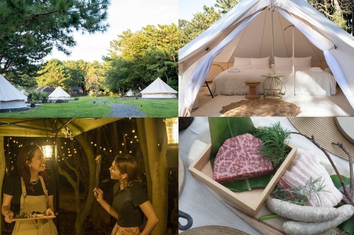 園内にそのまま泊まれるグランピング場ではプールチケット付きプランをご用意。プールで思いっきり遊んだ後には千葉の食のブランド「千」にも選ばれた絶品アウトドアディナーBBQをご堪能いただけます。
