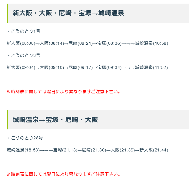 Q 城崎温泉⇔関西の利用は可能ですか?
