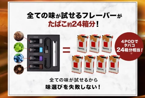 POD1個あたりの吸引回数が1200回で※の吸引回数となっており「コスパの良さ」も人気の理由の1つです!