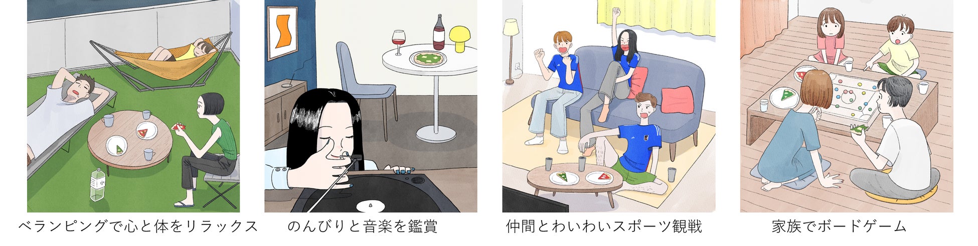 診断結果として表示されるシーンのイラストは、2023年4月27日(木)から5月31日(水)の期間でSNS(Twitter・Instagram)上で実施した、「#わたしの金曜夜の過ごし方 PIZZA FRIDAYキャンペーン」で集まった、計400件以上の金曜日の夜の過ごし方に関する投稿から選定し、イラストレーターのoyumiさん(https://www.instagram.com/oyumijp/)に描いていただきました。