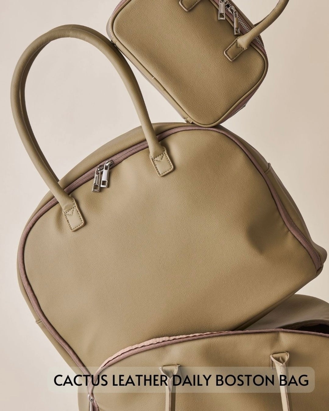 サボテンレザーデイリーボストンバッグ(ホワイト/ベージュ/ブラック)