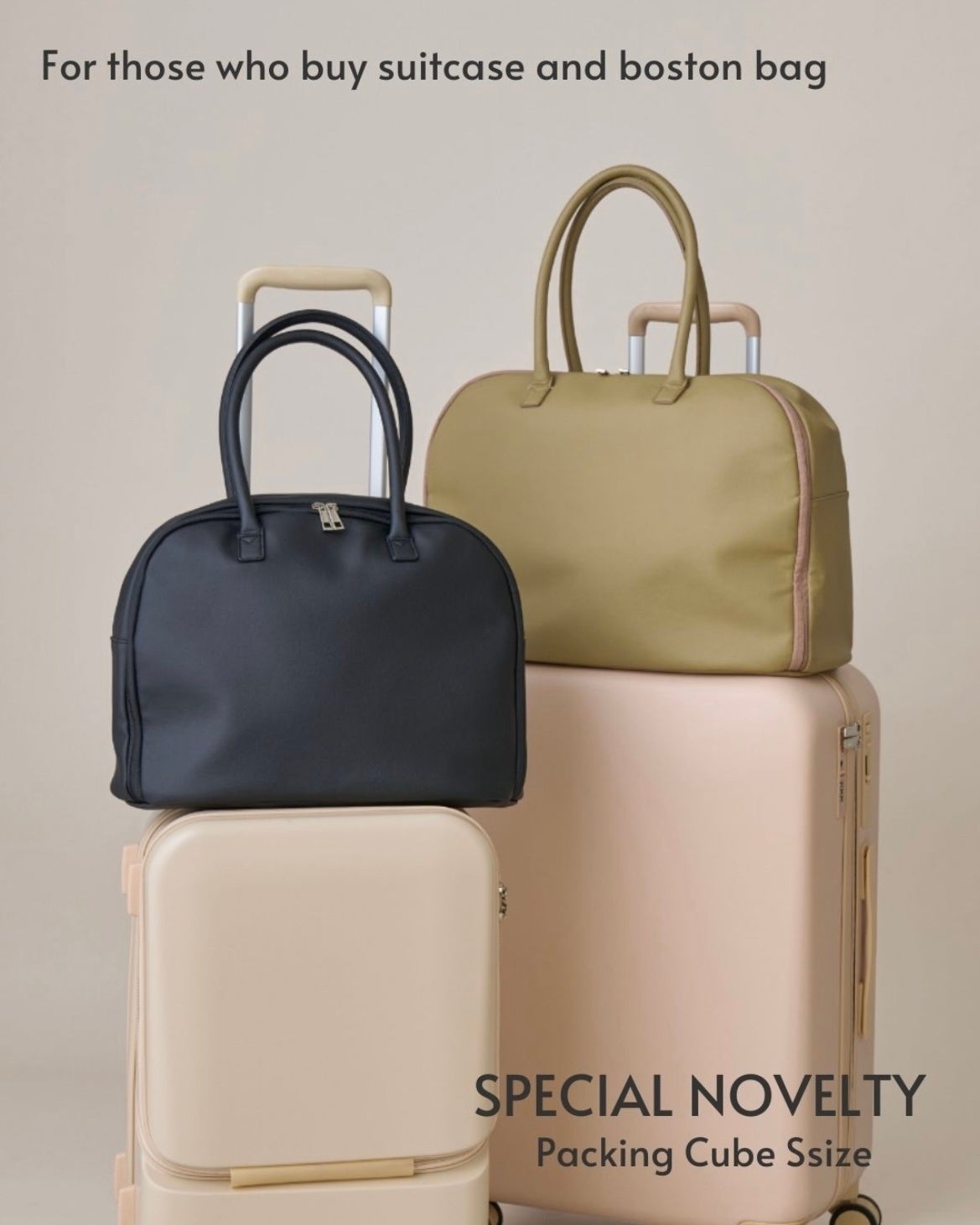 スーツケースとボストンバッグをセットでお買い上げの方に、パッキングキューブSサイズをプレゼント