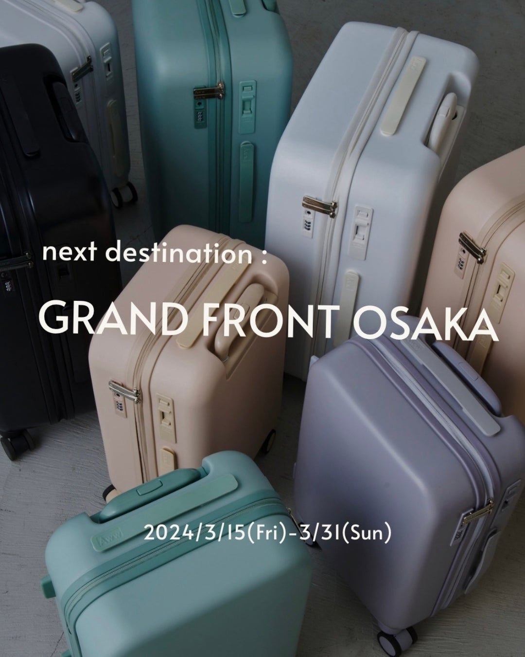 Aww定番のカラフルなスーツケースやウィークエンドボストンバッグはもちろん、旅先で便利なミニショルダーバッグや機能性ポーチなど、あらゆる旅に対応した豊富なラインナップを展開します。また、ウェブで完売中のアイテムやポップアップ限定アイテムも販売します。さらに、不要なスーツケースを回収して再利用する「Awwリサイクルプログラム」の実施や購入者ノベルティ、大阪限定のスペシャル企画もご用意しています。