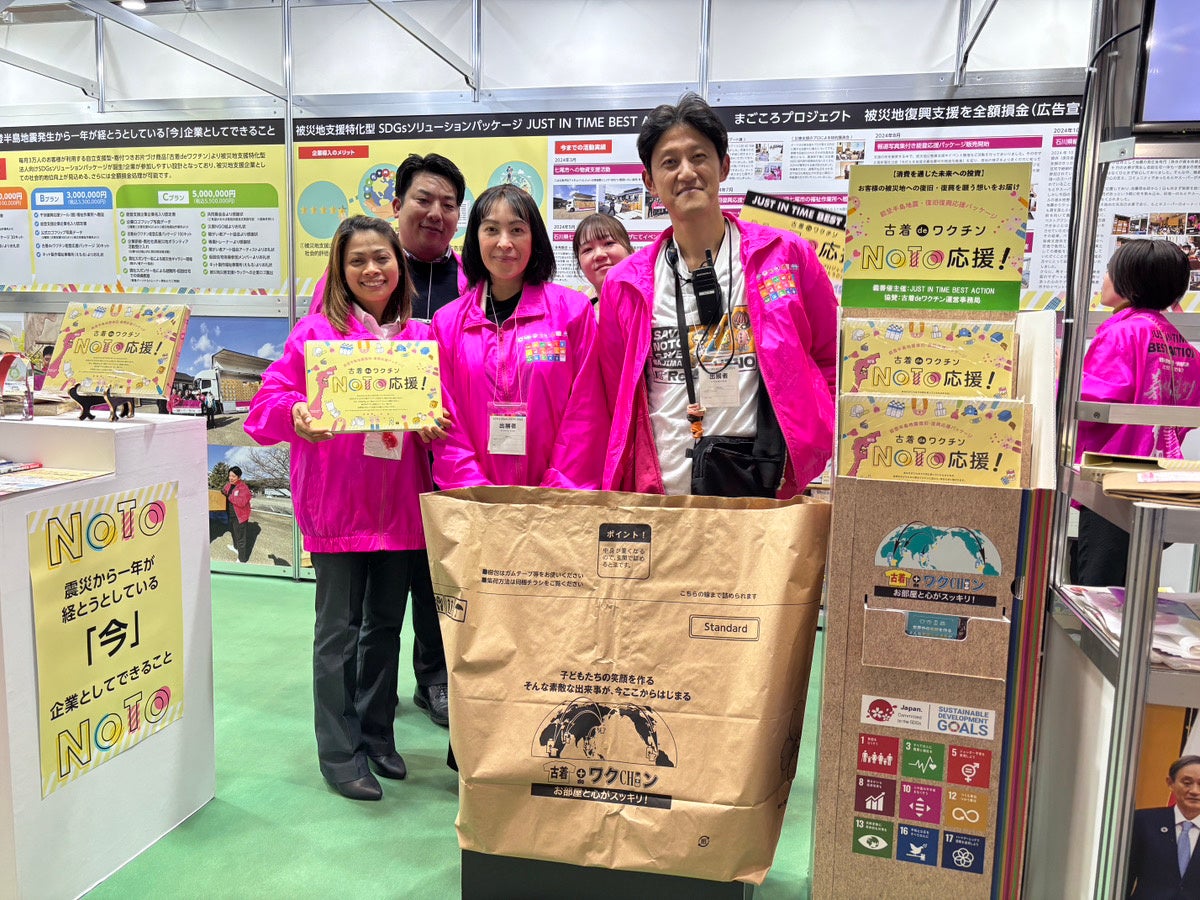 古着deワクチン能登半島地震復旧・復興応援パッケージの販売だけではなく、弊社では事業を通して、持続可能な社会を実現できるよう支援を止めずに一歩づつ「自分達にもできること」「自分たちにしかできないこと」を模索しながら活動してまいります。