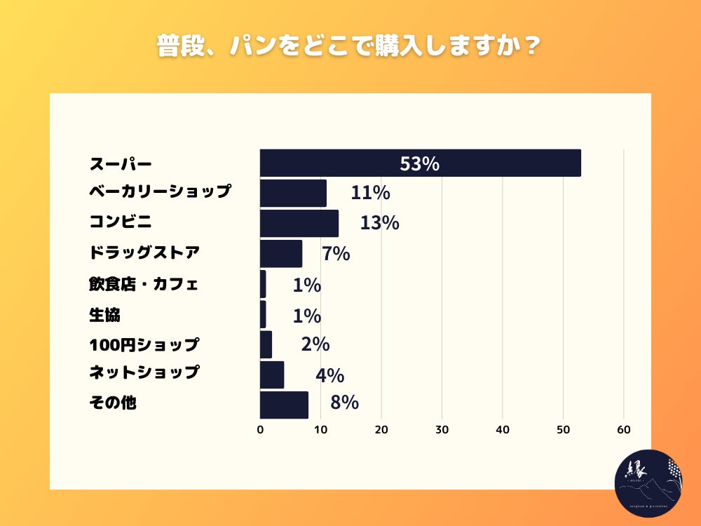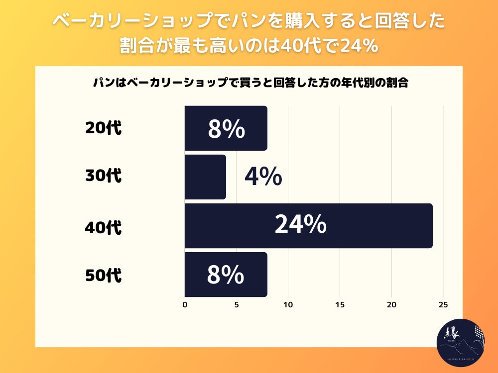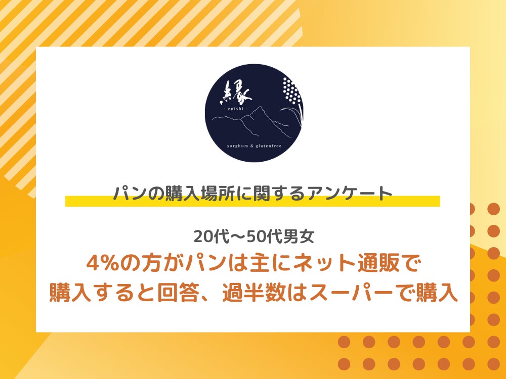 20代~50代男女の4%がパンは主にネット通販で購入すると回答、過半数はスーパーで購入
