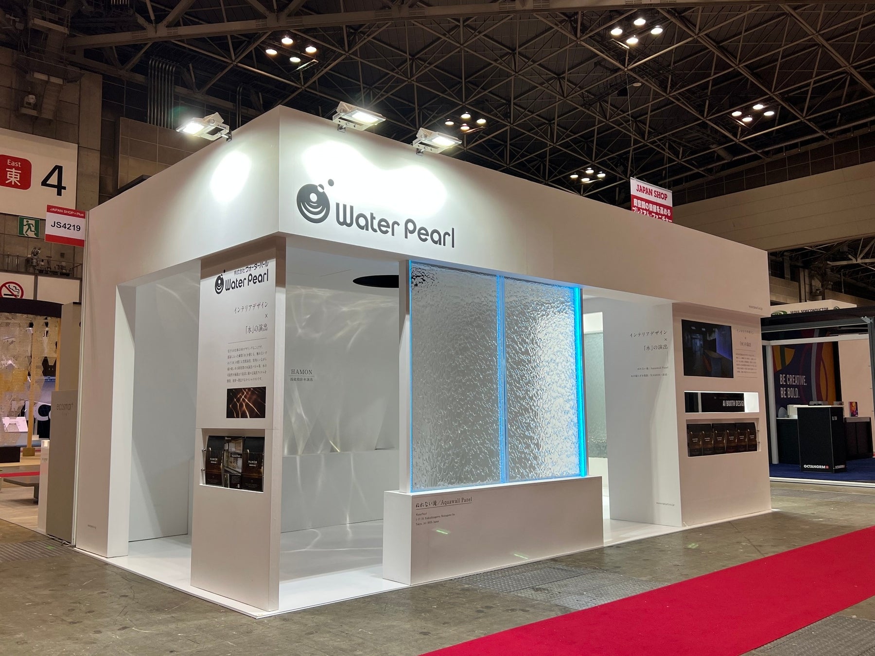 ディスプレイのモニターも壁に組み込んで、きれいに見えるので嬉しい。来場者様が入りやすい導線で、パンフレットの配置、壁の隙間なども非常によかった。展示の説明のオペレーションのアドバイスももらえて、参考になった」(ウォーターパール/吉田様)