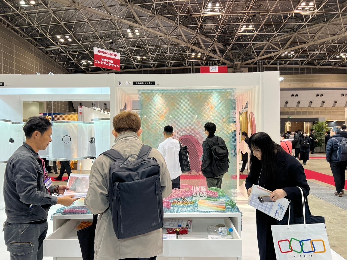 「2021年に初めて東大阪市のブースで、JAPAN SHOPに出展した時、出展場所がIDMエリア近くでした。そこでスーパーペンギンのスタッフさんと知り合ったことがきっかけです。2022年にIDMエリアの装飾に弊社の素材をブース全体で使用していただき、それからずっとIDMエリア内にて出展しています。スーパーペンギンは、色々な人を紹介してくれて繋いでくれます。来場者との出会いだけでなく、スーパーペンギンのおかげで、毎年様々なインテリア業界の方々とつながりが生まれ、世界が広がっていっています」(代表取締役/森永様)
