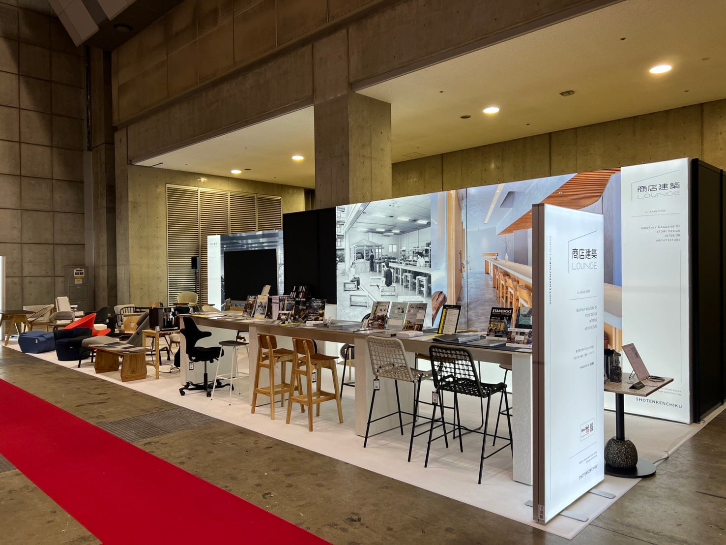 「毎回、当社が出展する際にはサポートしてくださっています。今回は、商店建築の雑誌立ち読みスペース、セミナー会場と2つの空間をうまくわけてデザインしてくださいました。今回ブース真ん中に会場の柱がありましたが、デザイン上でうまく活かしていただきました。壁面には、初めてファブリックライトを使用し、いい写真をセレクトしてくださり、弊社らしいブースになりました。」(商店建築:塩田健一編集長)