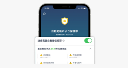 「架空請求」や「保険のセールス」、コールバックを狙った「ワン切り」など 、リスクの高い電話や、不審な番号を判別し、自動で着信拒否します。