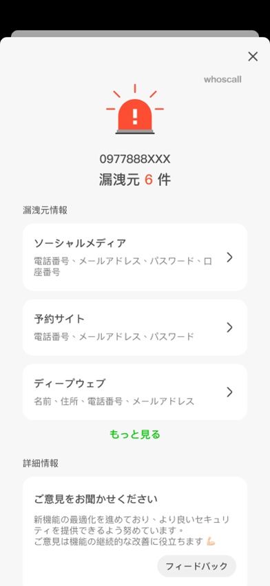 本提携により、詐欺や営業などの迷惑電話を識別するだけでなく、宅配便・行政・病院など携帯電話に登録していない番号の発信元を自動で識別するため、大事な電話を取り逃さないようなサポートが可能になります。さらに、SMSにおいては、メッセージ内のキーワードやURLから危険性を識別し、必要なメッセージと危険性のある不審なメッセージを自動で振り分けます。また、個人情報が漏洩していないかを確認し、取るべき対策を知ることも可能です。Whoscallと「楽天モバイル」は、「顧客への詐欺防止」を目標に掲げ、引き続き協力し、付加価値サービスを提供してまいります。