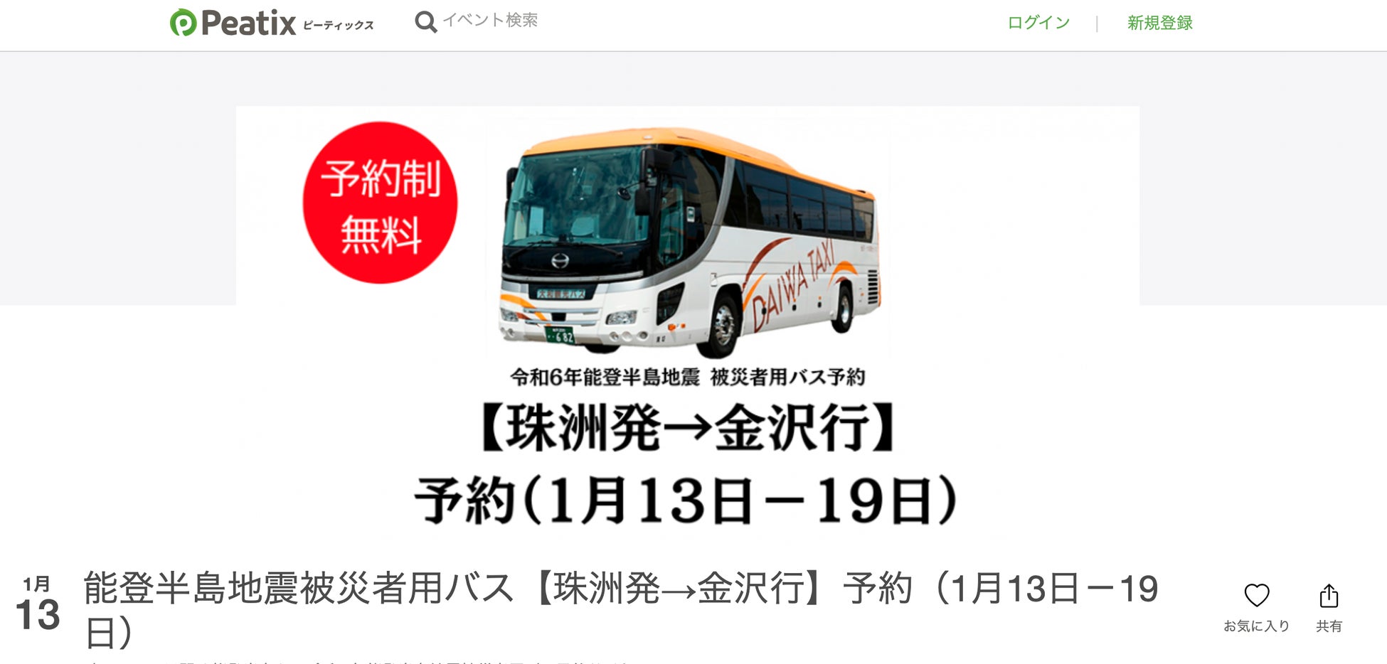 令和6年能登半島地震被災者用バス予約サイト 1月13日(土)〜1月19日(金)