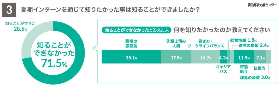 【23卒調査】 夏期インターンシップを通じて「知りたかったことを知ることができた」28.5% オンラインで不足する「職場の情報」提供が課題に