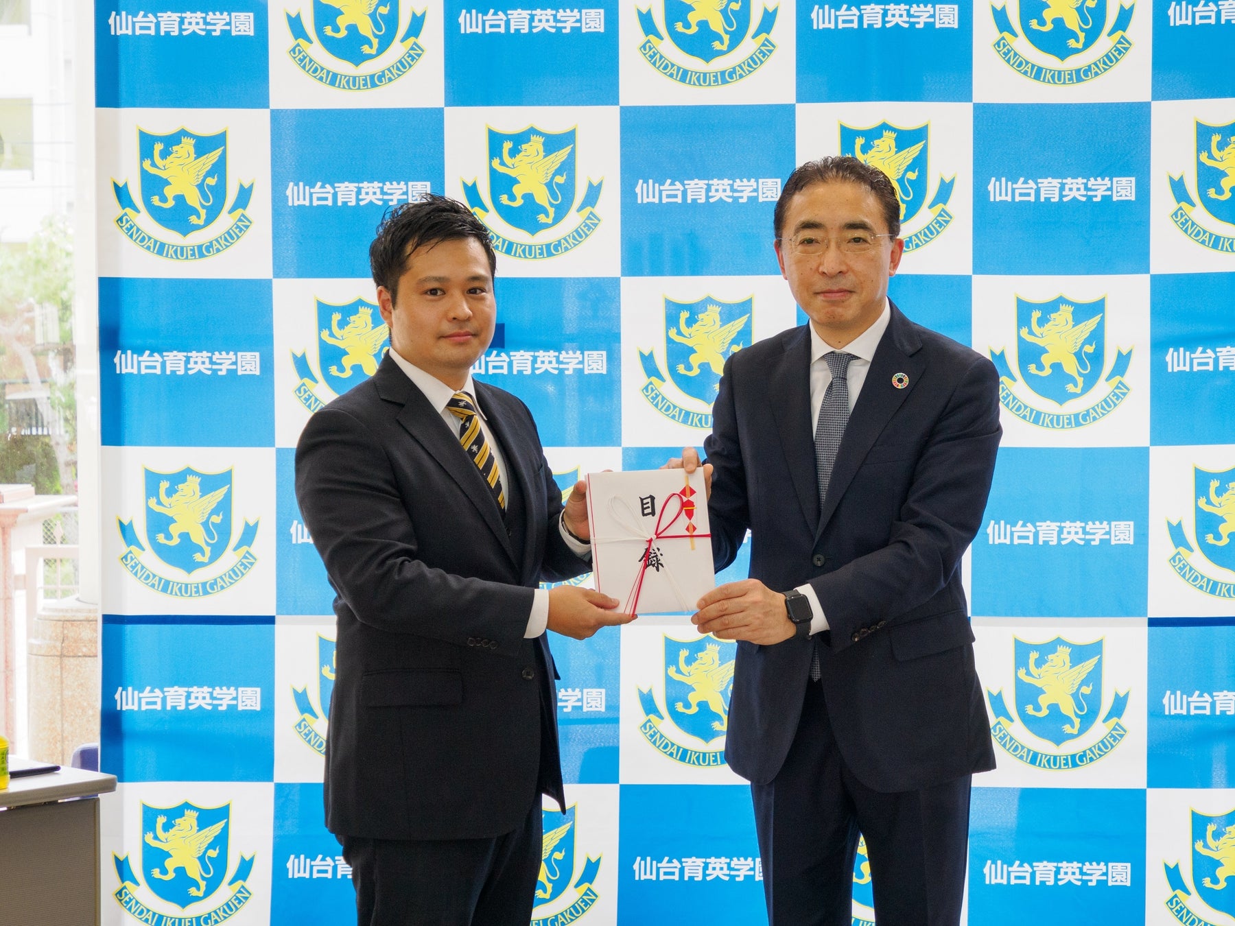 白川 英夫様、そしてオートモアに仙台育英学園のロゴが入ったカバーデザインにご協力をいただいた