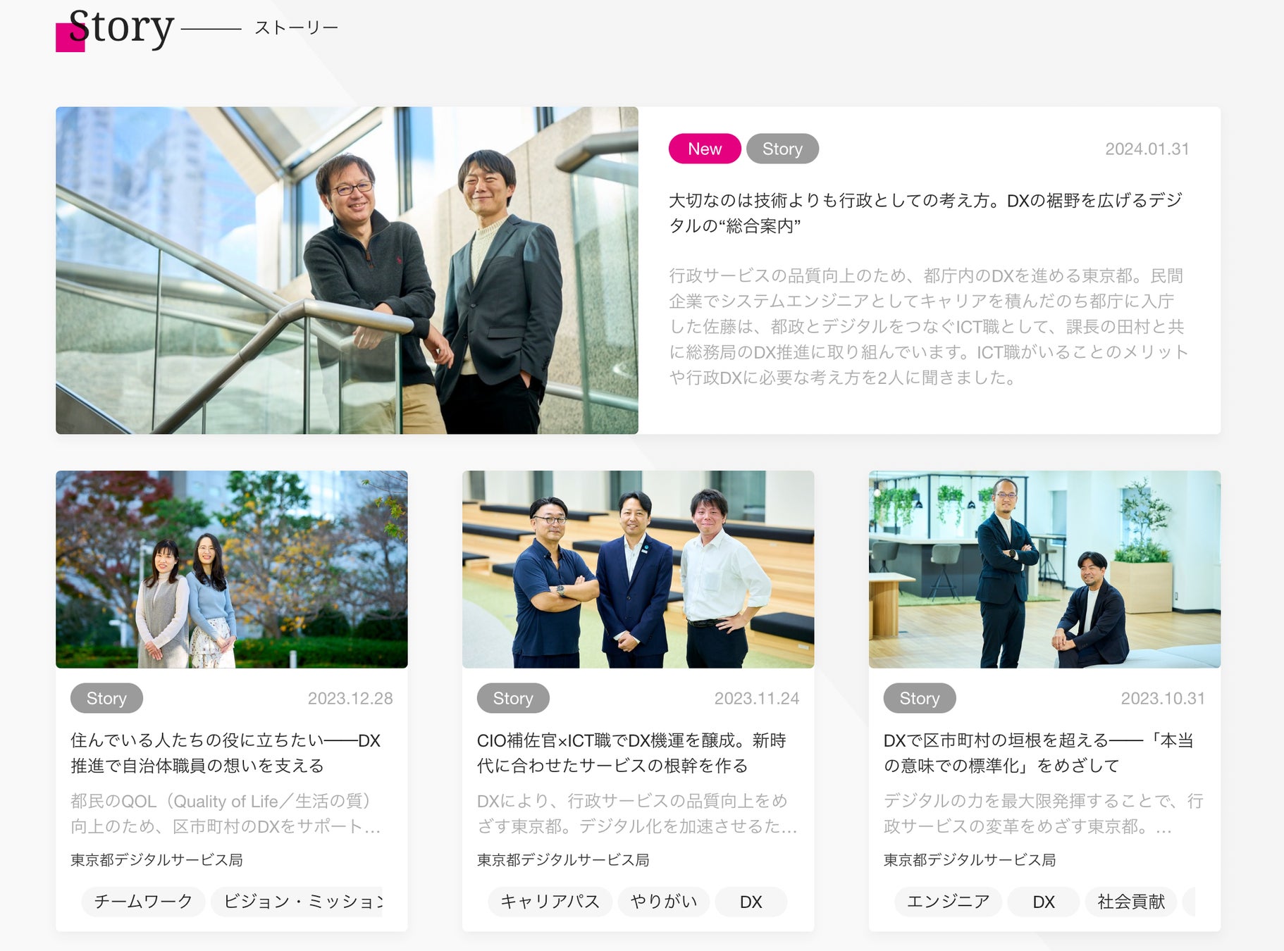 これからも、東京都で働くデジタル人材の「リアル」を伝えるインタビュー記事や動画を発信し続けていきます。多くの方々にご覧いただき、「行政」というフィールドでデジタル人材として力を発揮することに興味を持っていただけると嬉しく思います。