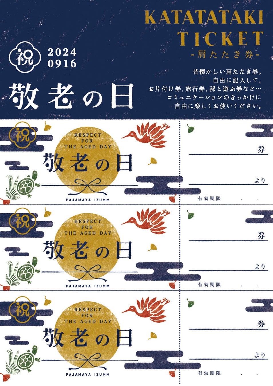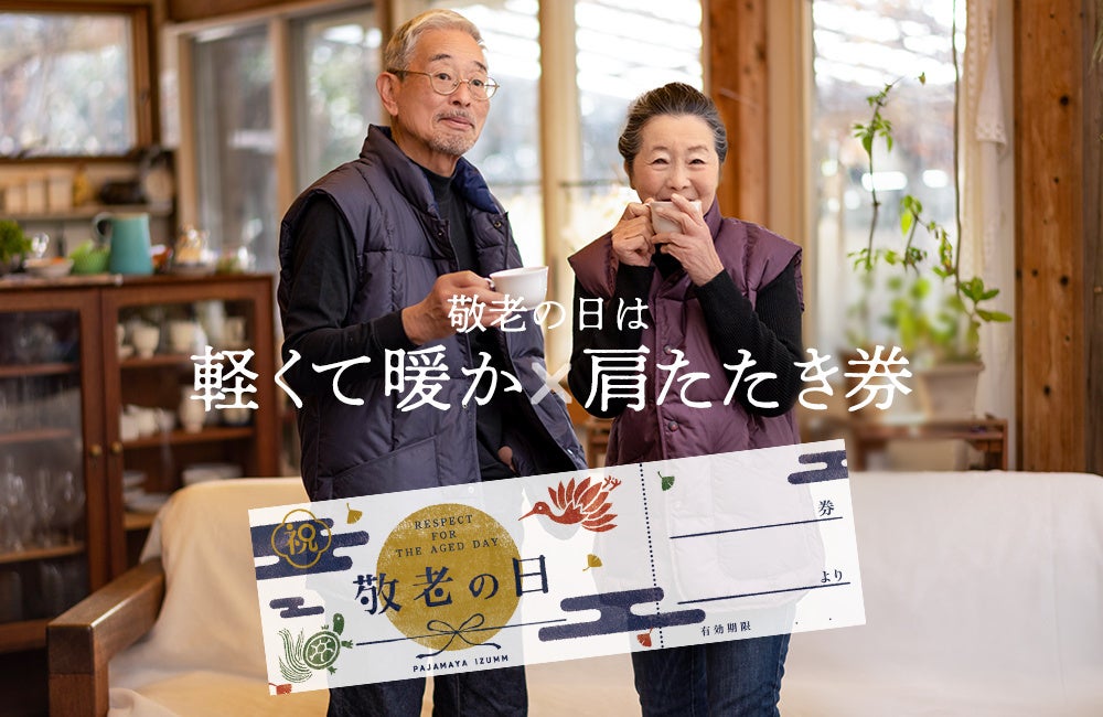オリジナルパジャマブランド「パジャマ屋IZUMM」(https://www.pajamaya.com/)を運営する株式会社フレックス(代表:熊坂泉、本社:神奈川県相模原市)は、ご本人様受け取りでご注文のお客さまに「肩たたき券」を同梱するサービスを開始しました。 敬老の日に合わせ、パジャマ屋IZUMMオリジナルの軽くて暖かい羽織りものやパジャマと一緒に「肩たたき券」をプレゼントすることで、新たなコミュニケーションのきっかけをつくり、より一層敬老の日を特別なものにしていただけます。