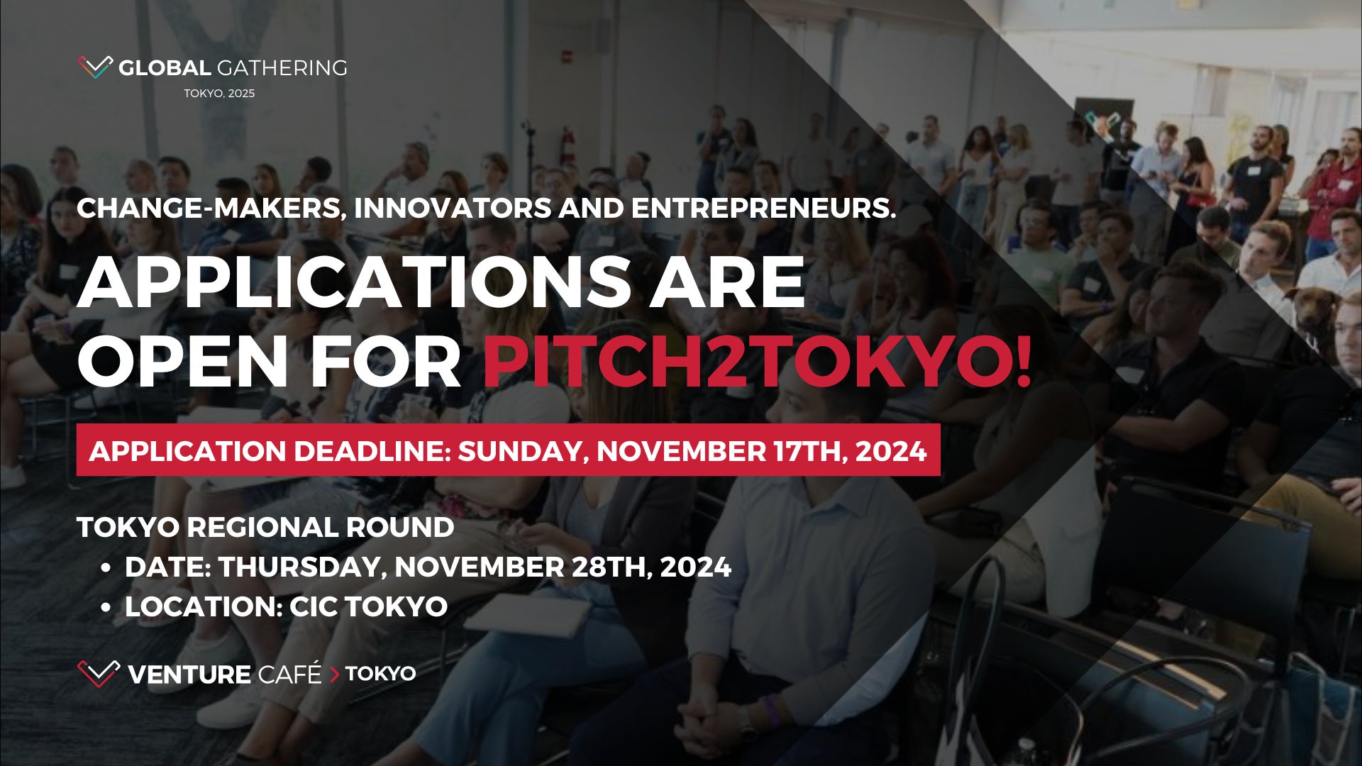 参加資格・方法(英語):https://venturecafeglobal.org/pitch2tokyo-2025-application/