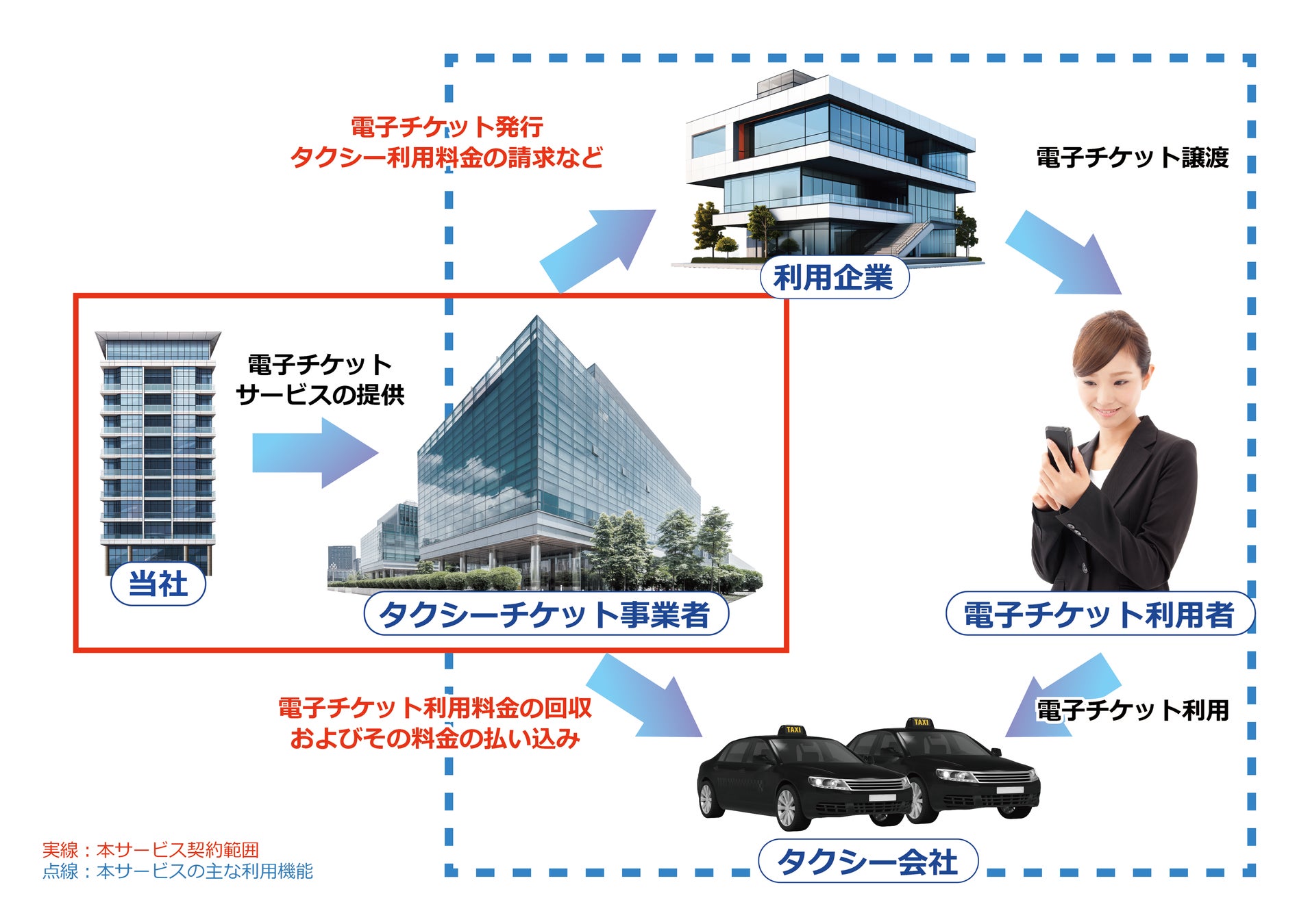 このたび提供を開始する「電子タクシーチケットサービス」は、これまでのノウハウを活用して、タクシーチケットの電子化によってペーパーレス、オンライン決済を可能とするもので、タクシーチケットや請求書などの紙発行や、人手による利用状況の集計などを不要とすることで業務効率化による時短に寄与し、人手不足解消に貢献します。