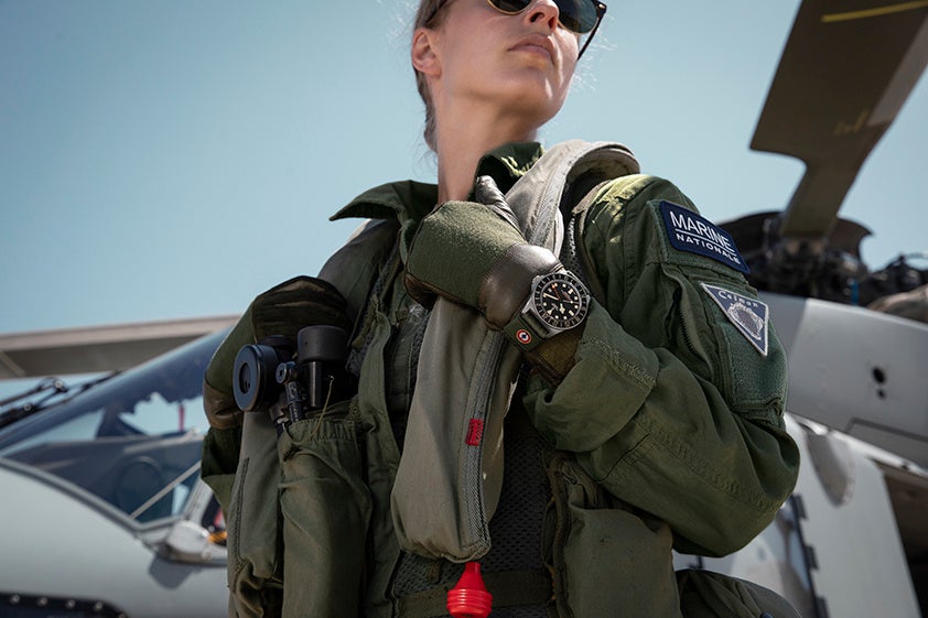フランス海軍の特殊部隊との共同開発に始まったペラゴス FXD のデザインコンセプトは、今やフランス海軍航空隊のニーズにも応えるに至る。新たに搭載された機能により、飛行士やフライトサポートチームは、現地時間と第3タイムゾーンに加え、「ズールー時間(Zulu Time)」を把握できるようになったのだ。新しいペラゴス FXD GMTは、METASによるマスター クロノメーター認定を受けており、海軍航空隊(Aéronautique Navale)が立ち向かう過酷な現場で求められる精度と信頼性を保証する。