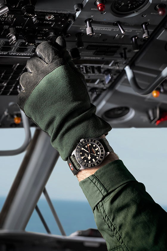 ラファール戦闘機のコクピットやアトランティック2対潜哨戒機の機内、またはヘリコプター搭載艦の航空管制塔には、フランス海軍航空隊であること以外に、共通点がある。それは、すべてズールー時間で運営されていることだ。このズールー時間を管理しやすくするために、チューダーはペラゴス FXD GMTを開発した。現場使用を通じた実績のあるFXDコンセプトを基に、この時計はすべての機能性を備えている。ストラップバーが固定された頑丈かつ軽量なグレード2 チタニウム製ケースは200 mの防水性能を有し、マットな質感のブラッシュ仕上げ。高性能機械式ムーブメントを搭載した42 mmケースは、コントラストが際立つダイアル、カラーコーディングされた針、そして鮮やかなオレンジが映える、ハンドメイドの矢印型24時間針が特徴的だ。これらの針、アワーマーカー、そしてベゼルの発光塗料が瞬時に時刻情報の確認を可能にし、暗い環境や夜間でもより高い視認性を実現。さらに、時針、分針、秒針を含むアワーマーカーは、ブルーの発光塗料で、グリーンに発光する24時間針と24時間目盛り入りベゼルと区別される。いつでもズールー時間を直感的に読めるよう細部がデザインされているのだ。さらに、ジャンピングアワーと連動した日付調整機構を備えたMT5652-Uマニュファクチュールキャリバーの実用性が加わることで、航空ミッションにおいて完璧な時間管理を実現する究極のツールとなる。