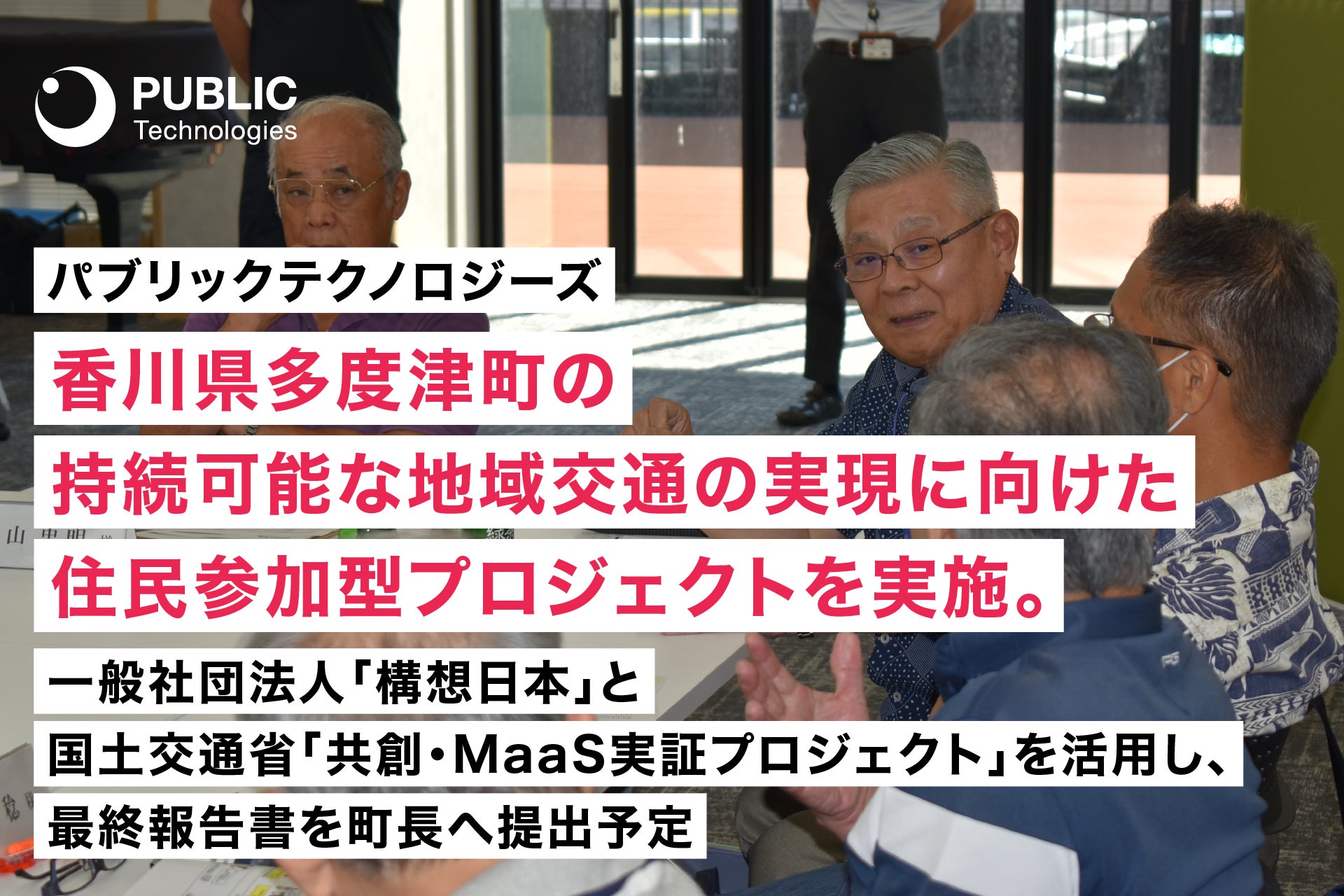 地方自治体に特化した公共ライドシェアサービスや自治体向けスーパーアプリ「パブテク」を開発・運営する株式会社パブリックテクノロジーズ(本社:東京都中央区 代表取締役CEO:青木大和、以下、「当社」)は、香川県多度津町にて、最適な地域交通のあり方を検討するため、住民参加型プロジェクト「多度津町自分ごと化会議」を実施しました。本事業では、無作為抽出で選ばれた23歳から79歳までの町民35名が参加し、計4回にわたる会議を通じて地域交通の課題解決に向けた議論を重ねました。一般社団法人「構想日本」との共催で実施された本プロジェクトは、国土交通省「共創・MaaS実証プロジェクト」人材育成事業を活用したもので、今後、参加者からの意見を集約した提案書を町長に提出する予定です。