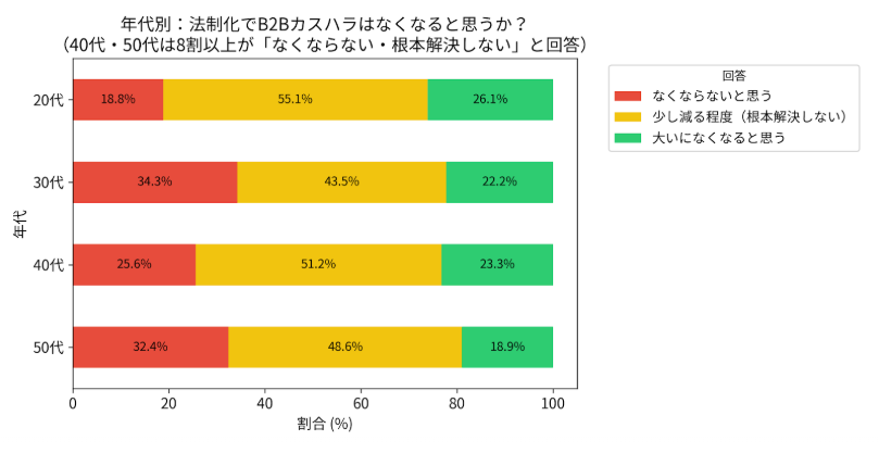 「近年の法制化でB2Bカスハラはなくなると思うか?」と尋ねたところ、