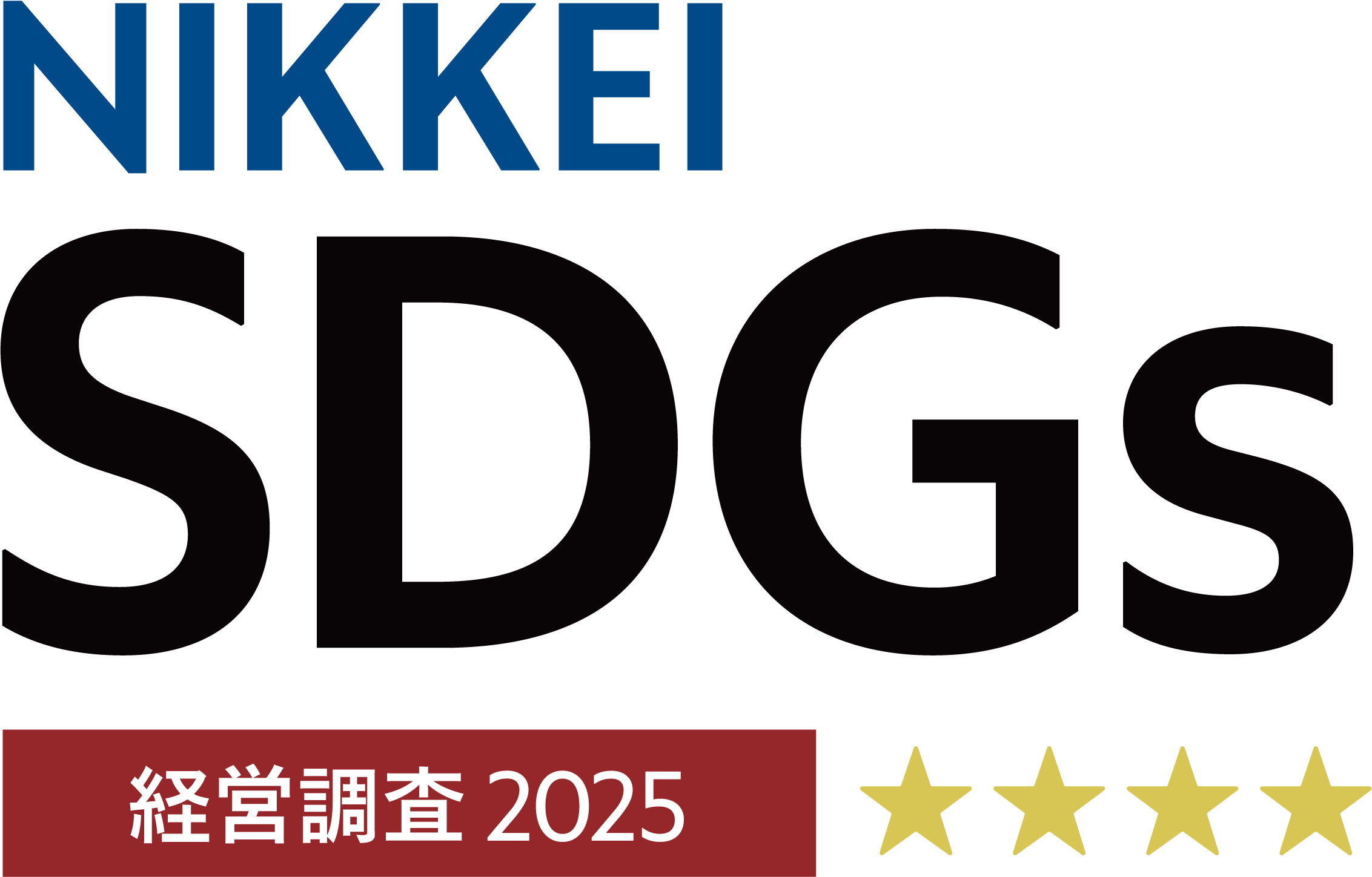 本調査は2019年から日本経済新聞社が実施しているもので、「SDGs戦略・経済価値」「社会価値」「環境価値」「ガバナンス」の4分野における総合得点で5段階で評価されるものです。 当社グループは、昨年の3つ星に続き、2025年は2ランクアップとなる4つ星の評価を受けました。