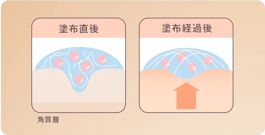 立体的に網目状にうるおい膜を作ることで、うるおい成分をしっかり留めて保湿。長い時間乾燥を防ぎます。