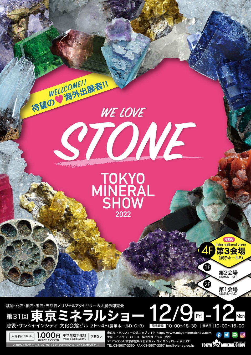 イベントの総合プロデュース事業を展開する株式会社トーガシ(本社:東京都江戸川区、代表取締役 吉田守克)は、2022年12月9日(金)~12月12日(月)に池袋サンシャインシティ文化会館ビル(所在地:東京都豊島区)にて開催される、鉱物・化石・宝石・隕石・天然石アクセサリーの大展示即売会「第31回 東京ミネラルショー2022」の会場運営・施工を例年に引き続きサポートいたします。