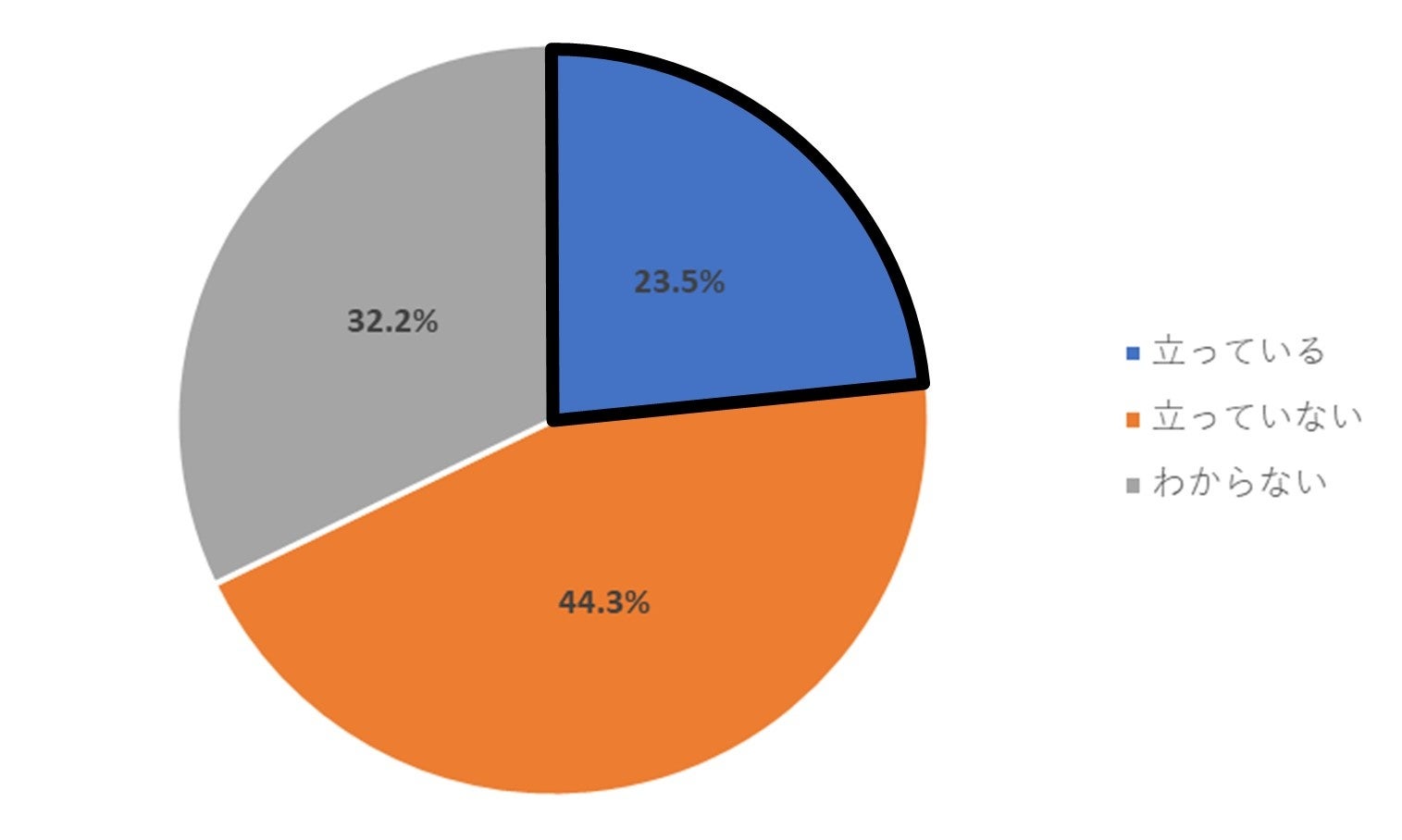 冬のボーナスの支給見込みについて聞いたところ、「立っている」が23.5%、「立っていない」が44.3%、「わからない」が32.2%という結果に。昨年度に比べて、冬のボーナス支給の見込みが立っている企業は14.2ポイントの減少となった。