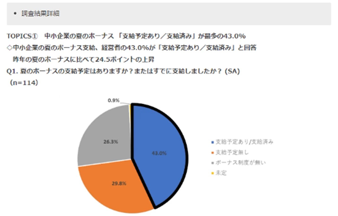 TOPICS① 中小企業の夏のボーナス 「支給予定あり/支給済み」が最多の43.0%