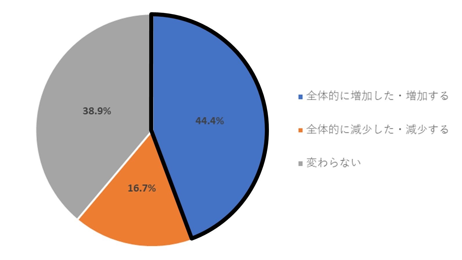 た。また、「全体的に減少した・減少する」は16.7%、「変わらない」が38.9%であった。