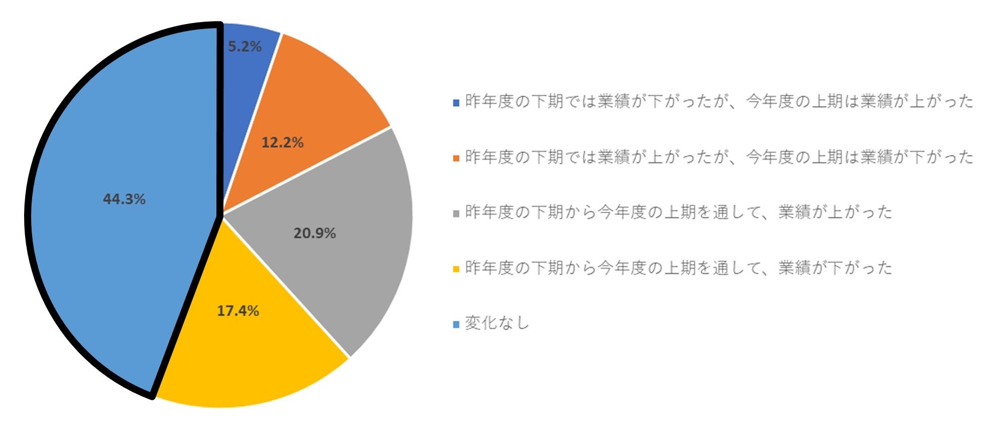 TOPICS② 昨年下期から今年度上期まで、業績に「変化なし」の回答が44.3%