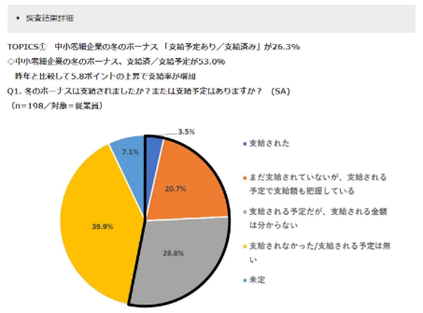 TOPICS① 中小零細企業の冬のボーナス、支給済/支給予定が53.0%