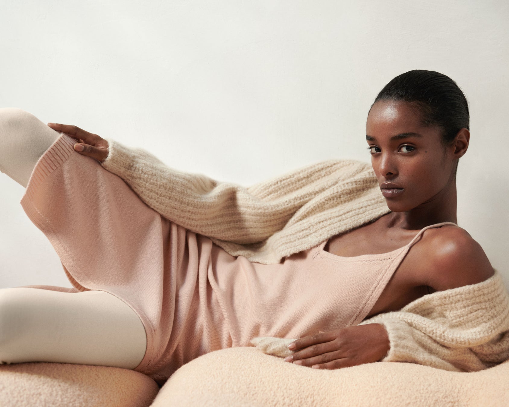 エレガントなライン、柔らかさ、心地よさが際立つこのコレクションは、カシミヤ、ベビーカシミヤ、カシミヤ/シルク、カシミヤ・ジャージーなどの天然素材や上質な繊維を使用しており、どのアイテムも心地よくしなやかで、天然素材に包まれたい方に最適です。カラーパレットは、ヌガー、カンドリアマーブル、カーシャ、ホワイトスノーなどの明るい調和のとれた色合いです。