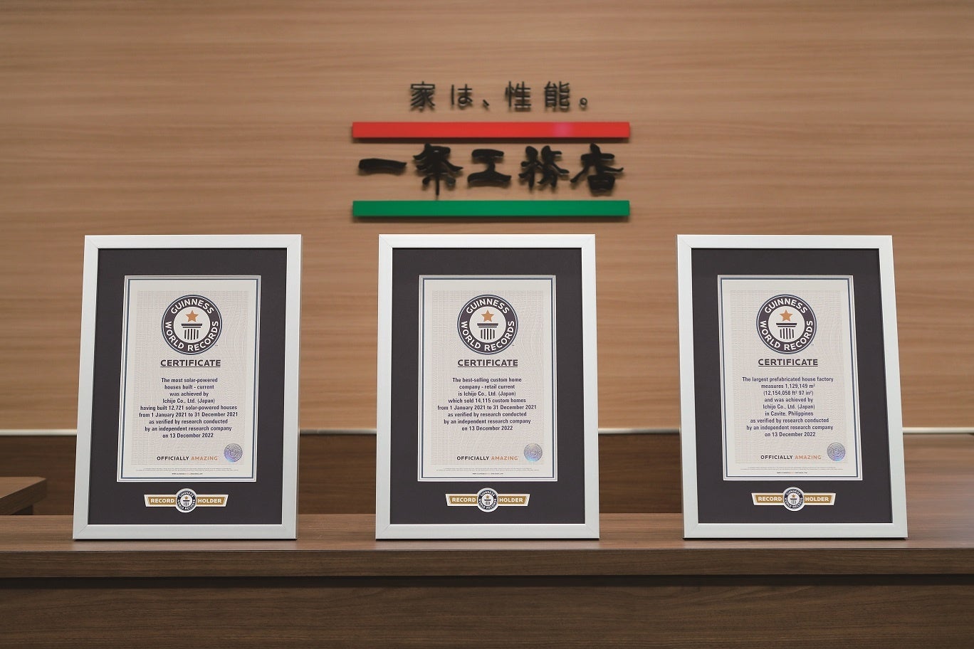 株式会社一条工務店(社長:岩田直樹 本社:東京都江東区)は、「最新年間で最も売れている注文住宅会社」「最新年間で最も多くの太陽光搭載住宅を建てた会社」「最大の工業化住宅工場」の3つの項目において、一昨年、昨年に続き、3年連続でギネス世界記録に認定されました。