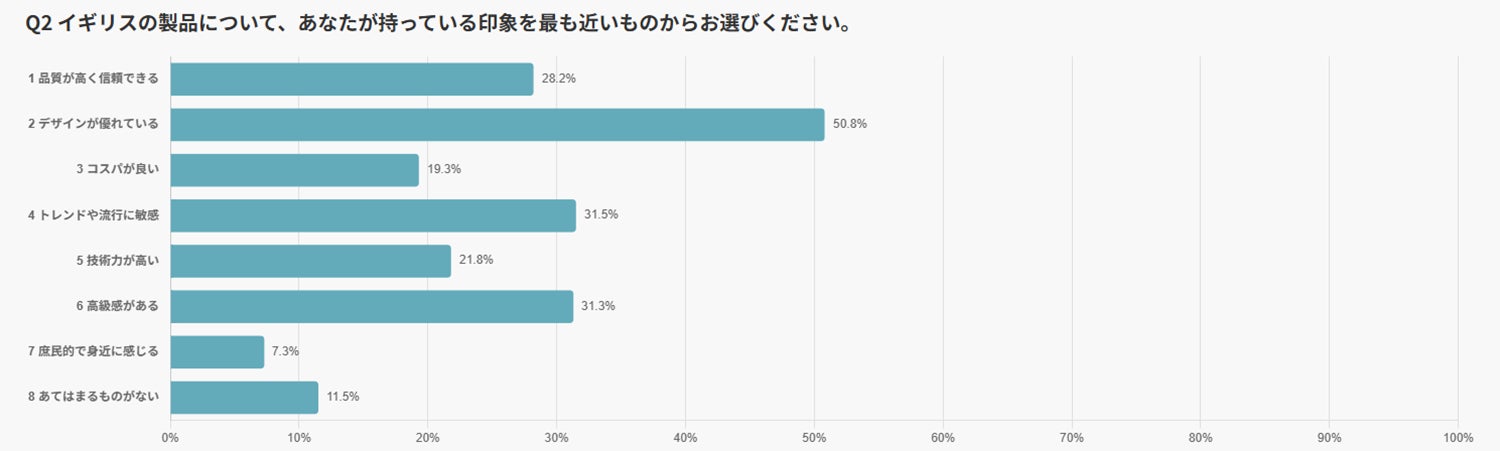 イギリス製品では、「デザインが優れている」(50.8%)が突出しました。