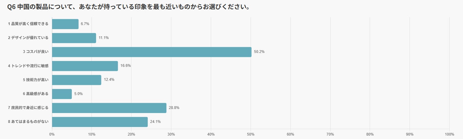 中国製品では、「コスパが良い」(50.2%)が半数を超えました。