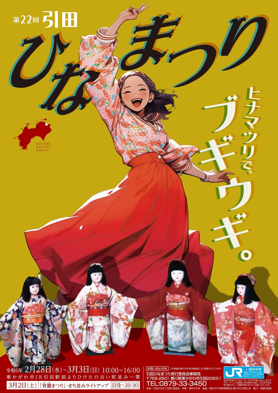 香川県の東かがわ市引田、綾歌郡宇多津町では、3月3日の桃の節句「ひな祭り」にちなんだ恒例イベントを、20年以上にわたり開催しています。